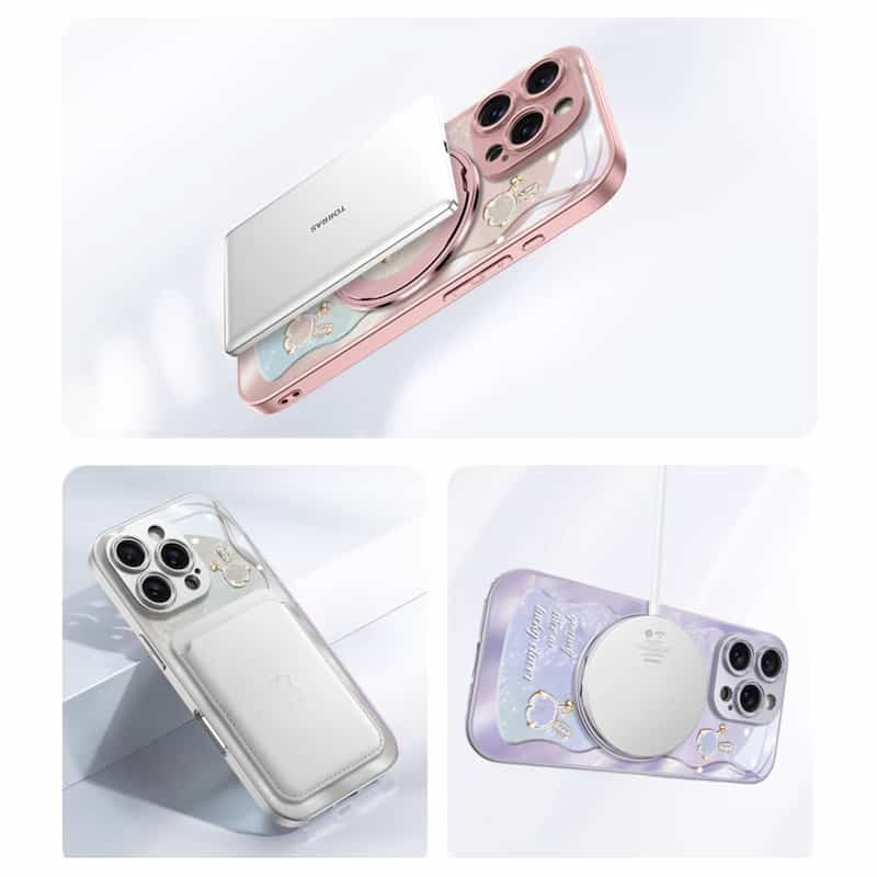 Rose Pink Wavy Shell Texture Rabbit Magsafe (Magnetic) Stand Phone Case for iPhone 14 Series